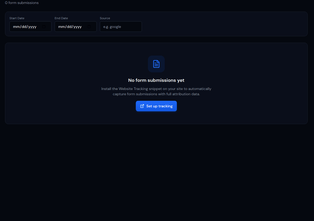 Form tracking captures every form submission on your website and records it alongside your call data. This gives you a complete picture of all leads — both phone calls and form fills — in one dashboard. Each form submission includes the same UTM, landing page, and click ID attribution as your calls.